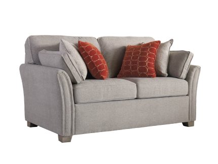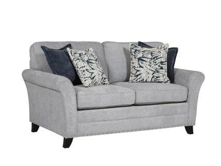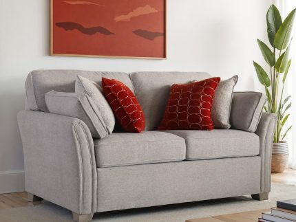 Pippa 2 Seater Sofa in Silver brings a touch of elegance and comfort to any space. Upholstered in a soft textured fabric, it features loose back and seat cushions, flared arms, and subtle stud detailing along the base. Finished with a mix of plain and patterned scatter cushions with flange seams, this sofa is perfect for adding a refined, relaxed feel to your living room.