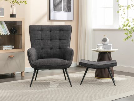Katelyn Accent Chair with Stool – Charcoal Grey