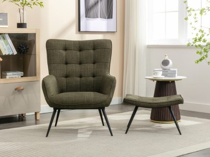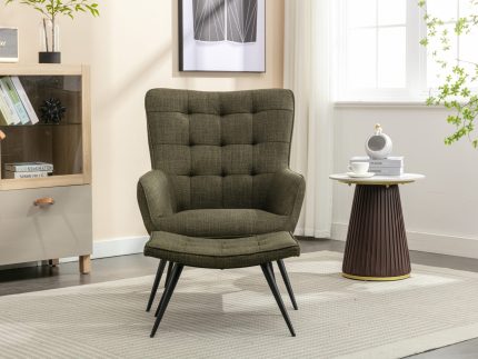 Katelyn Accent Chair with Stool – Moss Green