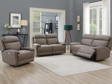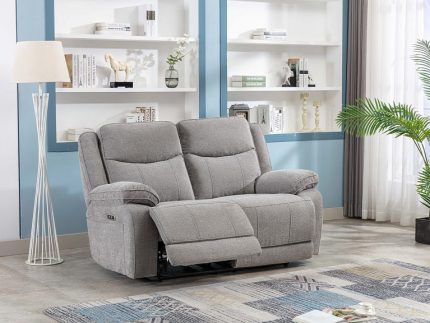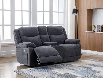 The Herbert Powered Two-Seat Sofa with Charging Console offers the ultimate combination of style, functionality, and convenience. Upholstered in soft grey fabric, this sofa features powered reclining seats, a built-in USB port on the sides, and a charging station with a storage box for added practicality. Available in light or dark grey, it’s a versatile piece for any contemporary living space.