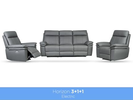 Horizon 3+1+1 Electric Reclining Leather Suite Dark Grey