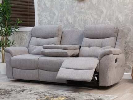 The Shelby Sofa is a perfect fusion of modern functionality and relaxed style, designed to elevate your living room experience. Upholstered in a soft mist grey fabric, it offers a fresh and contemporary look while delivering exceptional comfort. Both end seats feature smooth manual reclining, allowing you to unwind at your own pace. The centre seat cleverly transforms into a drop-down table, creating a convenient surface for drinks, snacks, or devices, and is equipped with integrated wireless charging to keep your gadgets powered up without the clutter of cables. With its clean lines, thoughtful features, and cosy design, the Shelby Sofa brings comfort and innovation together in one beautifully crafted piece.