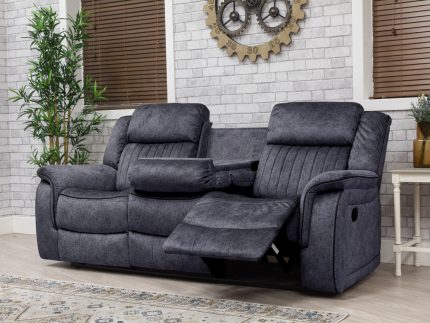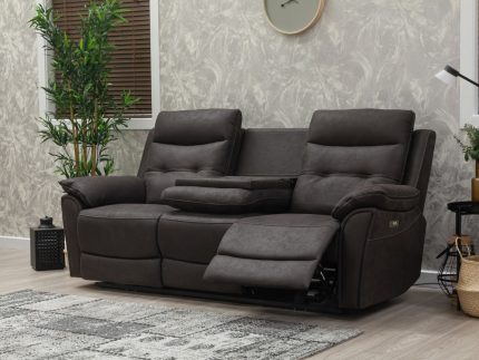 The Skye Sofa offers the perfect blend of modern style, advanced functionality, and everyday comfort. Upholstered in a rich charcoal fabric, it brings a contemporary and sophisticated look to any living space. Both seats feature smooth electric reclining, allowing you to find your perfect position with the touch of a button. At the centre, a built-in console provides convenient storage and integrated cup holders, keeping everything you need close at hand without compromising on style. Designed for both relaxation and practicality, the Skye is an ideal choice for cosy nights in and laid-back lounging