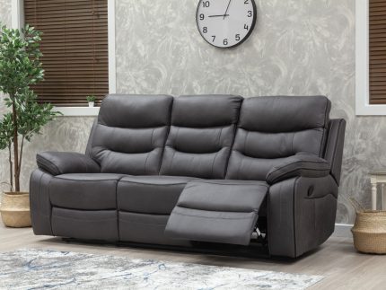 The Branson Sofa is where modern design meets everyday practicality and indulgent comfort. Upholstered in a deep, dark grey fabric, it brings a sleek and contemporary feel to any living room while providing a cozy and supportive place to relax. This stylish sofa features manual reclining seats, allowing you to effortlessly kick back and unwind.