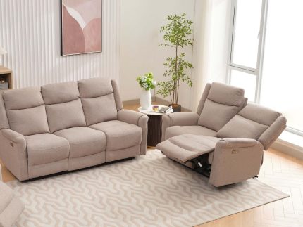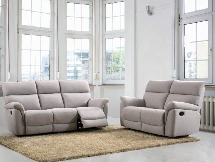This full fabric Claremont 2 Seater Electric sofa design is classically styled and space-saving, featuring same-colour stitching, reclining and neck/lumbar