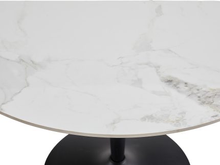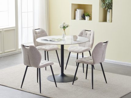 Sadia Round Dining Table in Smoke – a perfect blend of style and functionality for your dining area. Crafted with a textured melamine top, this table offers superior durability, making it ideal for everyday use. The melamine finish ensures the table is heat, stain, and scratch-resistant, guaranteeing long-lasting beauty and functionality. Paired with a sleek black powder-coated metal base, the Sadia Dining Table exudes modern sophistication.