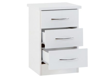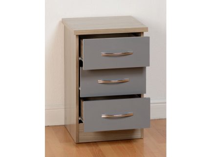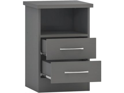 Nevada Full Grey Two Drawer Bedside is a grey lacquered bedroom item with metal handles that will add a modern look to any bedroom.