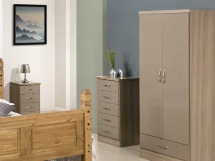 Delivery of The Nevada Oyster Three Door Two Drawer Wardrobe in 2-3 weeks.