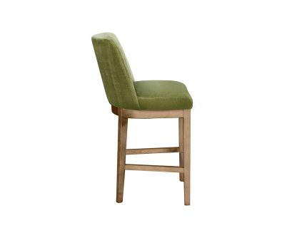 Massimo Counter Stool in Green combines comfort and elegance with a touch of modern rustic style. Featuring a plush fabric seat pad and backrest for added comfort, it's supported by sturdy solid wooden legs. The rich green upholstery adds a pop of colour, making it a standout addition to any dining space.Massimo Counter Stool _x000D_