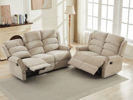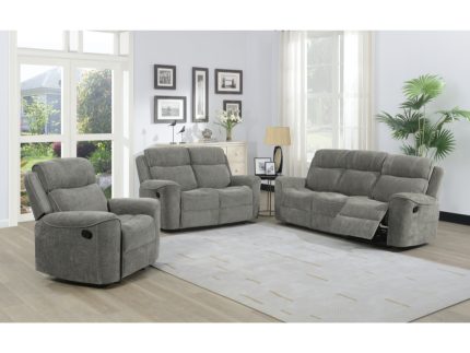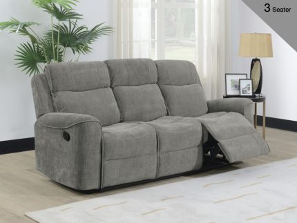Experience comfort and style with our Stylish Sandhurst Reclining Suite. Available in Dark Grey and Light Grey on premium fabric. Designed for modern living, this recliner combines sleek aesthetics with practical functionality. The pocket-sprung seat offers superior support and cushioning, ensuring a comfortable seating experience. Its modern design seamlessly blends into any contemporary space, while the easy-to-use manual reclining function lets you relax at your own pace. Perfect for adding both style and comfort to your home.