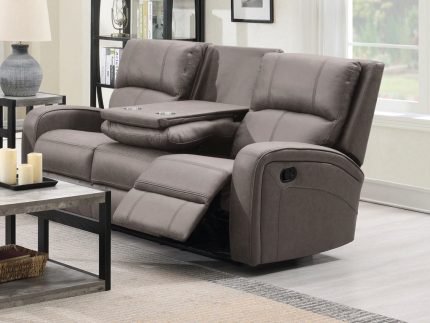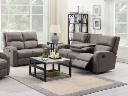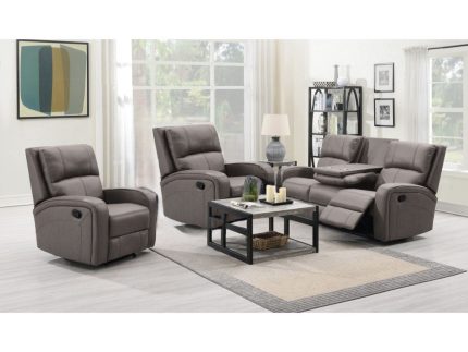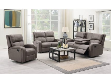 Upgrade your living space with the Silverton 3-Seater with Console in Taupe, featuring a sleek design, manual recline function, and