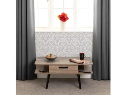 SAXTON ONE DRAWER COFFEE TABLE in a grey/oak effect pale wood finish, ideal as a general purpose occasional table.