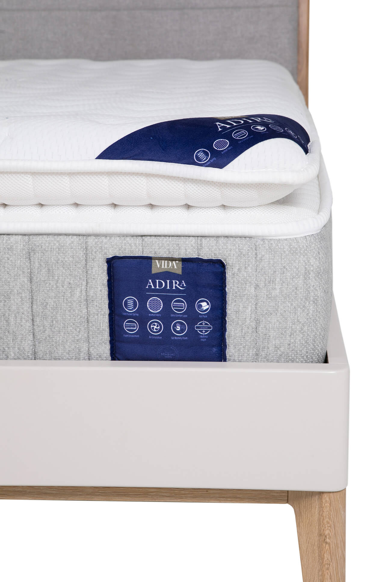 Introducing the Adira Mattress by VIDA – featuring 1500 pocket springs for superior comfort and support along with an optimal mix of high-density foam, gel memory foam, and Seaqual fabric to bring you a luxuriously comfortable sleep. Plus, our antibacterial material keeps your mattress fresh and hygienic. With roll pack technology, it’s easy to install or transport. Our Seaqual fabric is made from recycled marine litter, supporting the SEAQUAL initiative – a unique community working with global ocean clean-up programmes.Adira 5′ Mattress _x000D_
