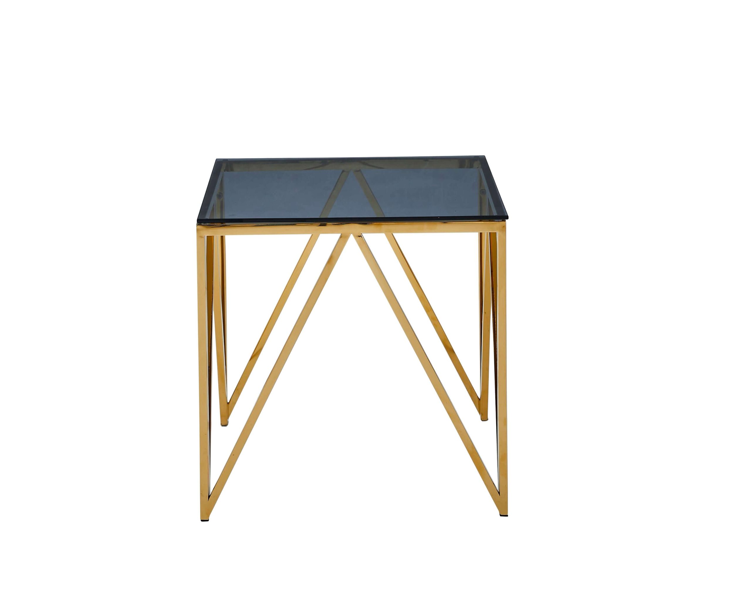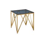 This sophisticated Allure Gold End Table features a classic golden finish, with a chic blue-grey smoked glass accent. Elevate your décor with this elegant piece.