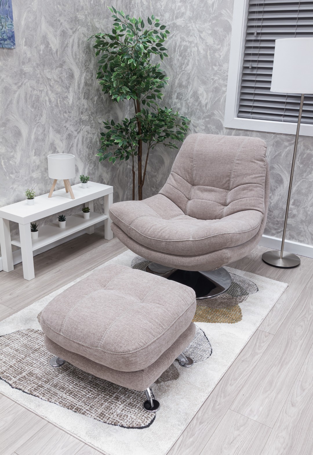 Axis Full Fabric Swivel Chair + Footstool – Nature Champagne