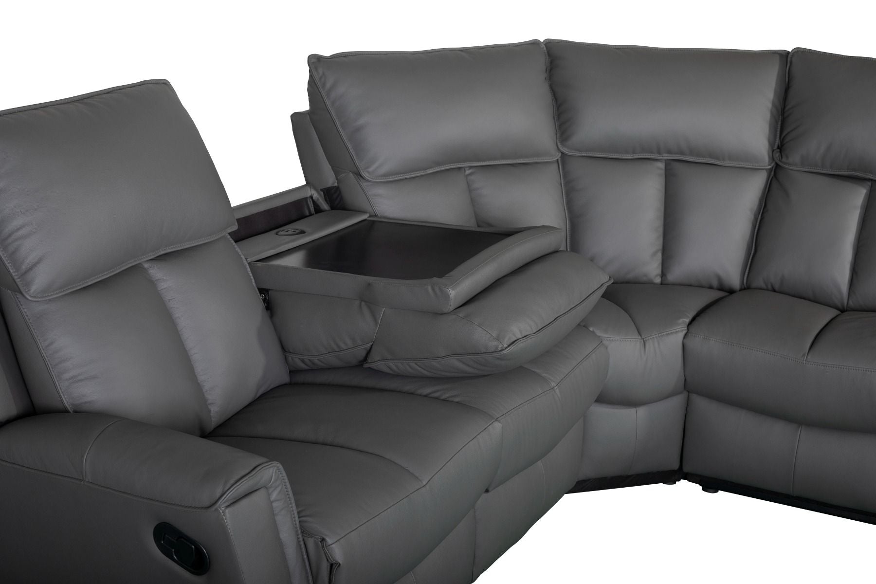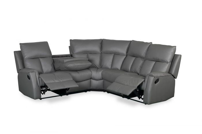 Bergamo Leather Recliner Corner Sofa-Dark Grey