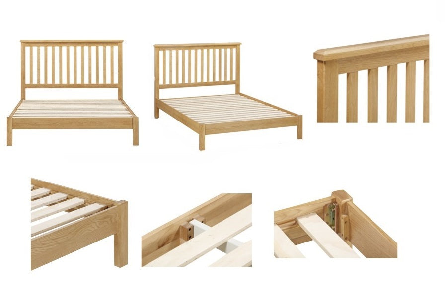 The slatted design adds a touch of traditional elegance while providing excellent support. The robust frame ensures long-lasting durability and stability for a comfortable night’s sleep. With its natural wood grain and rounded edges, the Lugano Oak 5′ Slatted Bed enhances any bedroom décor with style and functionality.