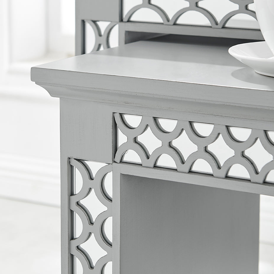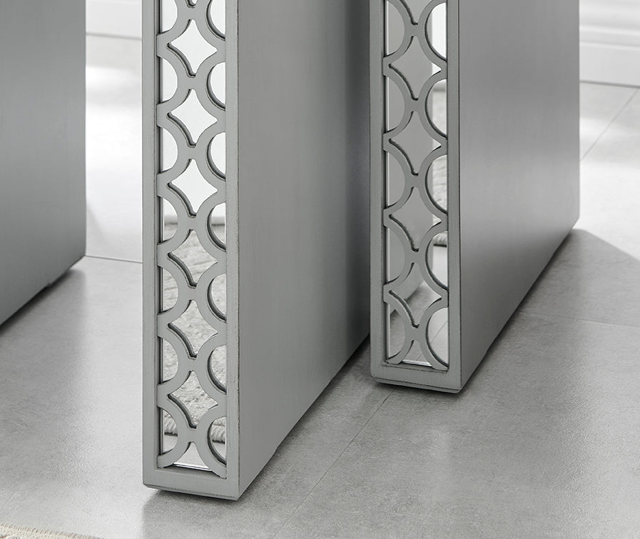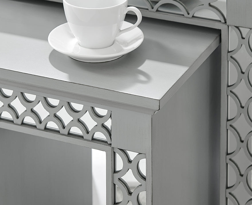 Charisma Grey Gloss Nest Of Three Tables is made from MDF board, grey gloss effect panels and polished metal legs.