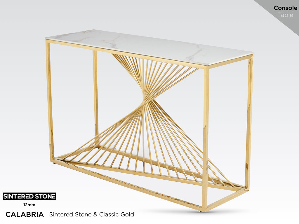 Calabria Console Table – Sintered Stone and Gold