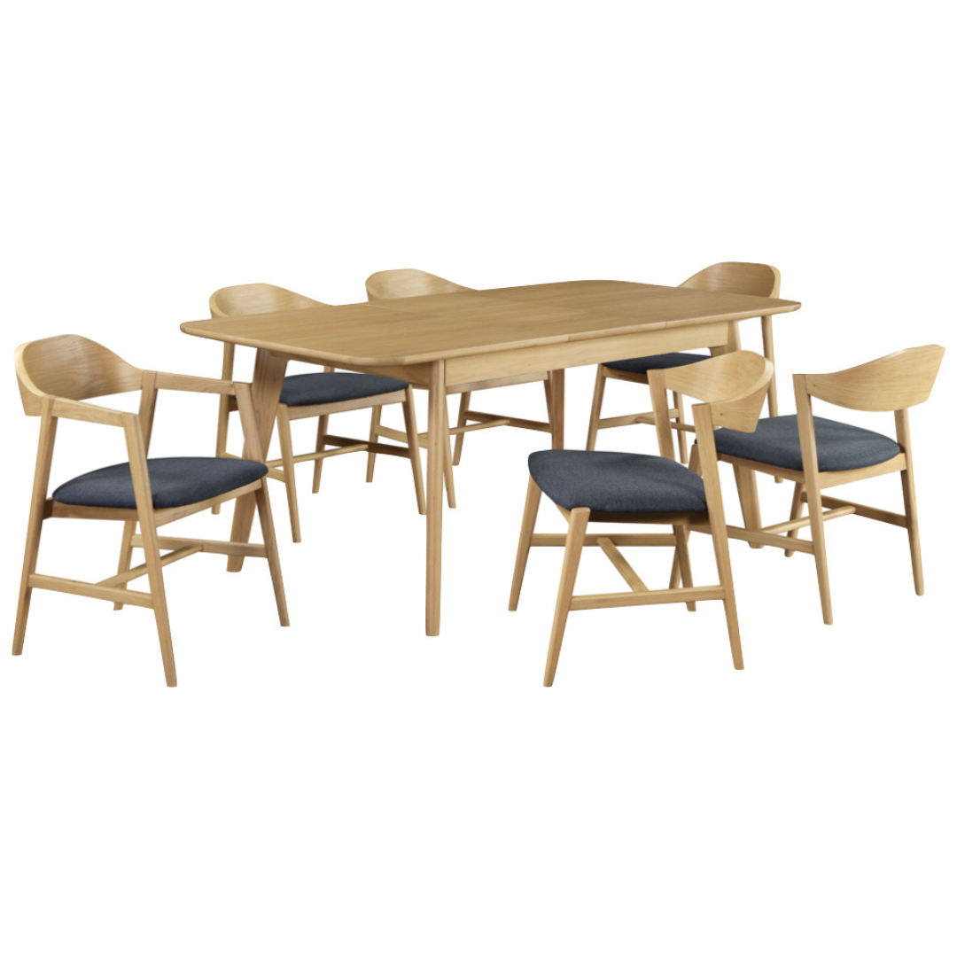 Discover the unmatched craftsmanship of Carrington’s 140-180 Extension Dining Set with 6 Chairs- Oak, featuring a modern and sleek design that is built to last. With a clean oak finish, this set includes 2 carvers and 4 dining chairs, providing a perfect balance of quality, convenience, and flexibility for every dinner. Made from solid oak, this dining set is not only beautiful, but also durable for creating cherished memories for years to come.