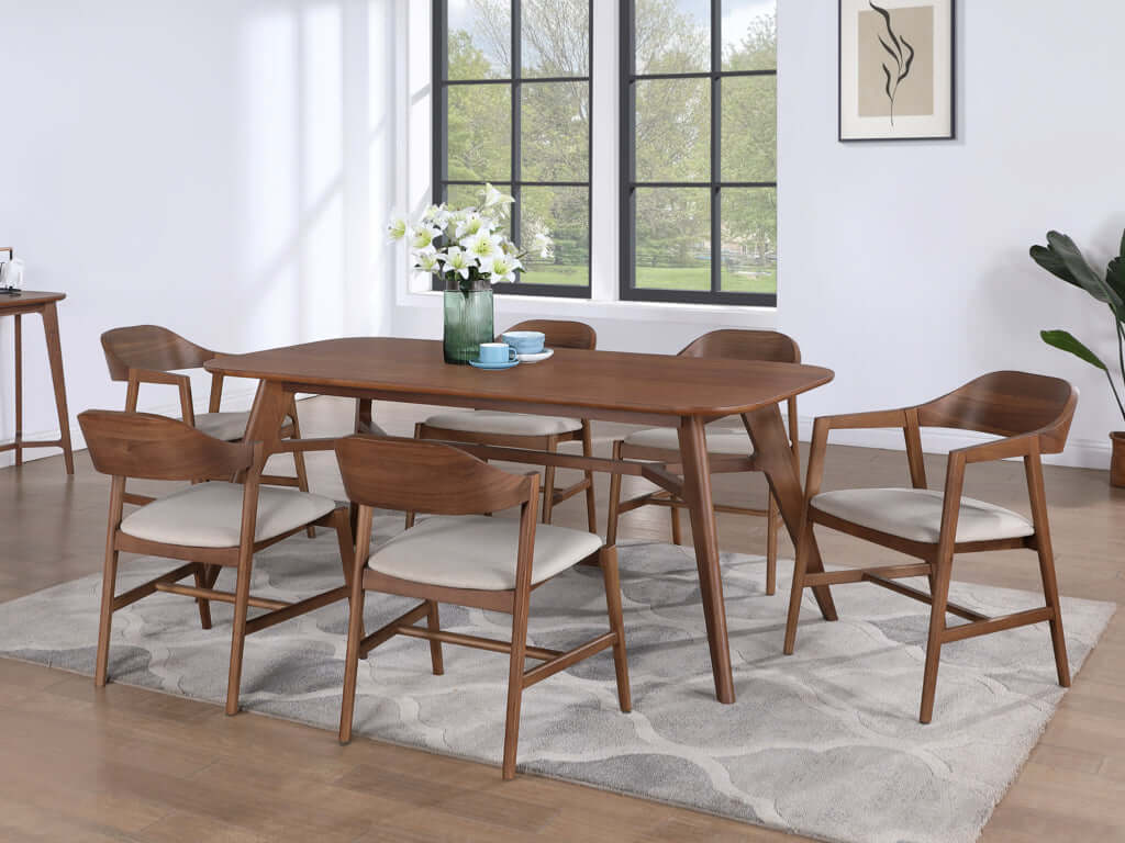 • Elegant Walnut Finish: The table, chairs, and carvers are finished in rich walnut, adding warmth and sophistication to your dining area.