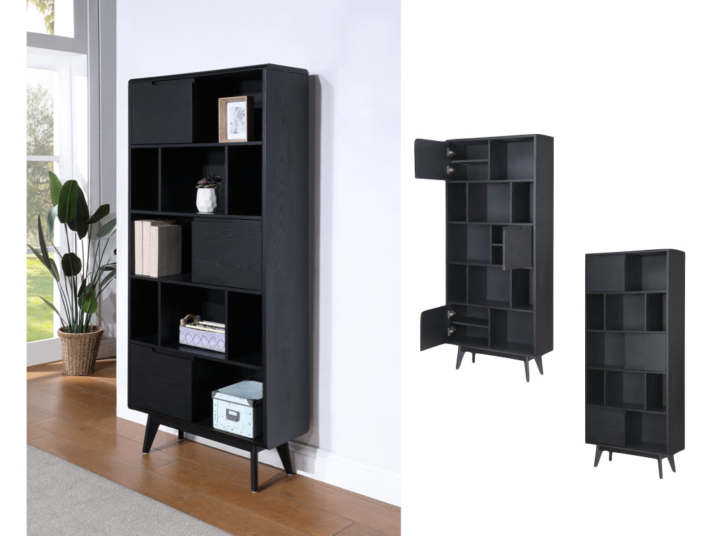 The Carrington Large Double Bookcase in Black offers a stylish and functional storage solution that adds a touch of modern sophistication to any room. Featuring a sleek black finish, this bookcase combines contemporary design with practicality, making it perfect for both living rooms, home offices, or study areas. With its generous size, it provides ample storage space with multiple open shelves for displaying books, decorative items, and cherished collectibles.