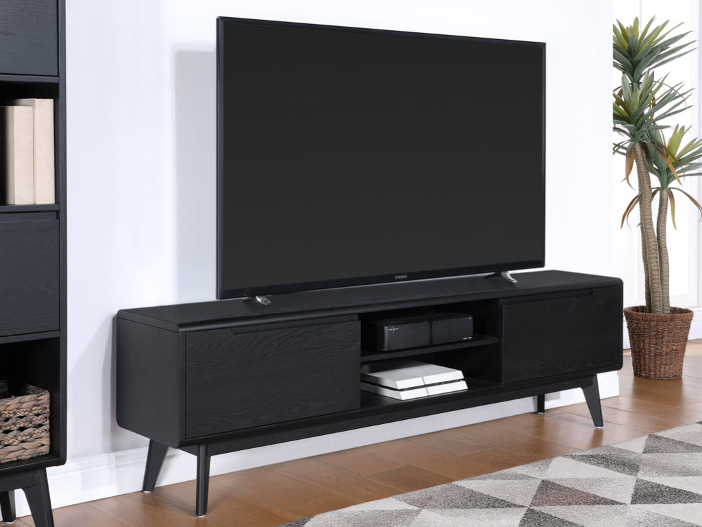 • Functional Open Shelf: The open shelf provides a practical space for easy access to frequently used items, such as remote controls, DVDs, or a sound bar.