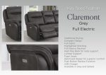 The Claremont 3 Seater Electric is the epitome of luxury. Its high-end upholstery is designed with complementary stitching, plus adjustable reclining and lumbar/neck support for extraordinary comfort—all conveniently managed with the push of a button. Furthermore, a USB port provides device charging capability.
