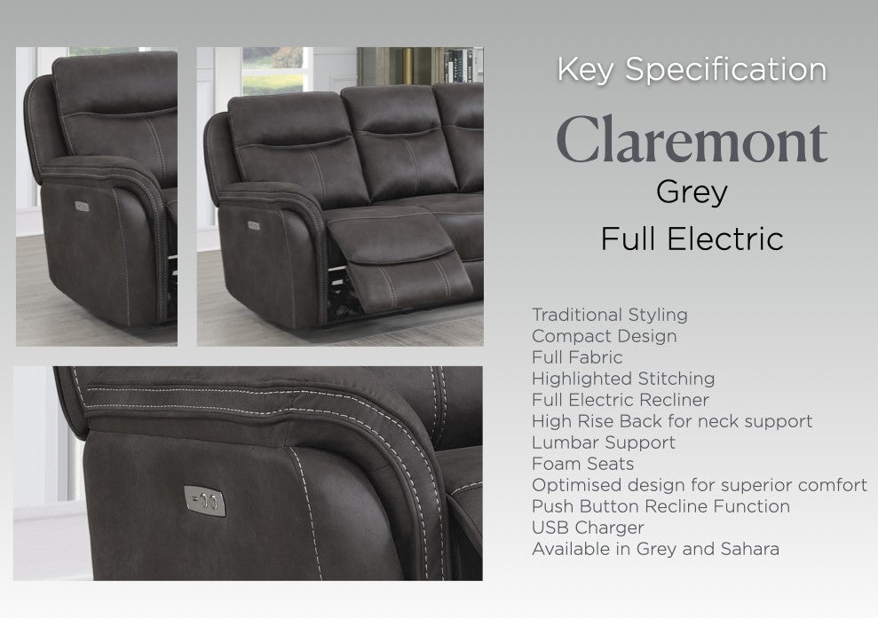Claremont 3 Seater Electric Recliner Sofa – Grey
