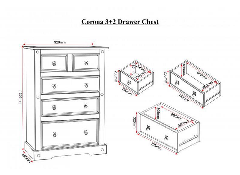 Corona Pine 3+2 Drawer Chest