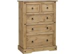 Corona Pine 3+2 Chest-the Mexican styled Corona Pine Collections have prominent black metal studs, metal drawer runners & black metal hinges, which add to their design style, all elements of these collections have distressed pine finishes and are exceptional value for money.