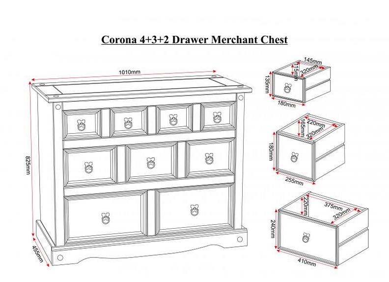 Corona 4+3+2 Chest-W 101 x D 45.5 x H 82.5 cm