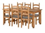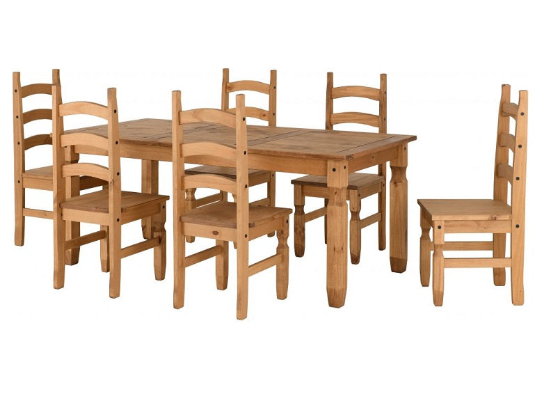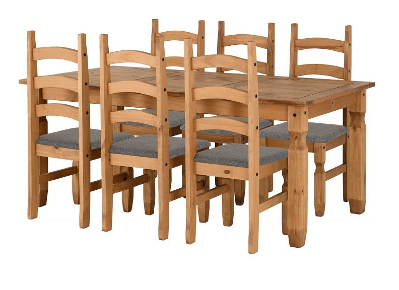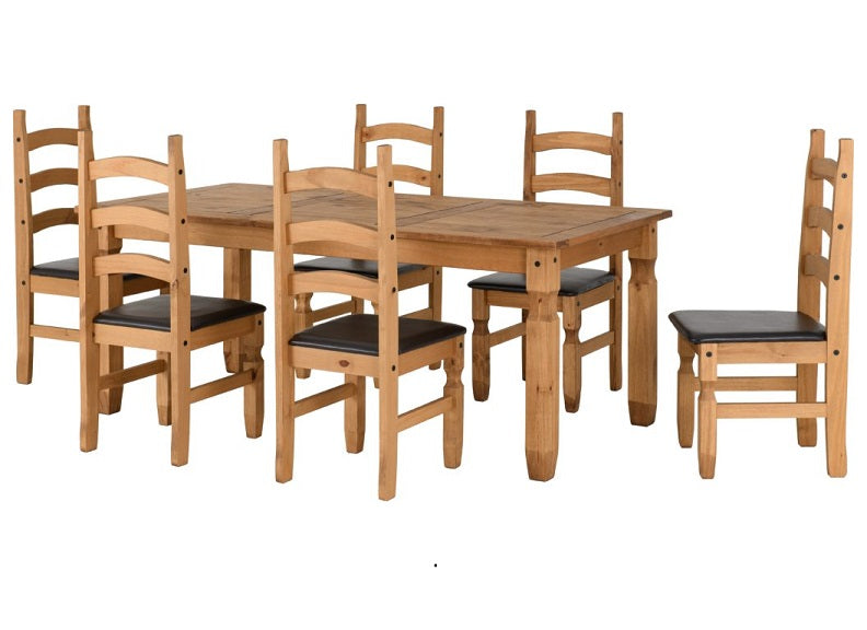 Corona Pine 6 ft Fixed Dining Sets-the Mexican styled Corona Pine Collections have prominent black metal studs, metal drawer runners & black metal hinges, which add to their design style, all elements of these collections have distressed pine finishes and are exceptional value for money.