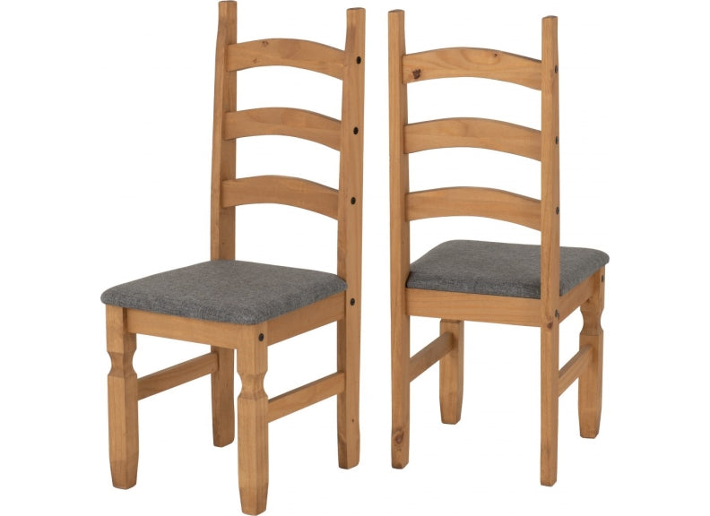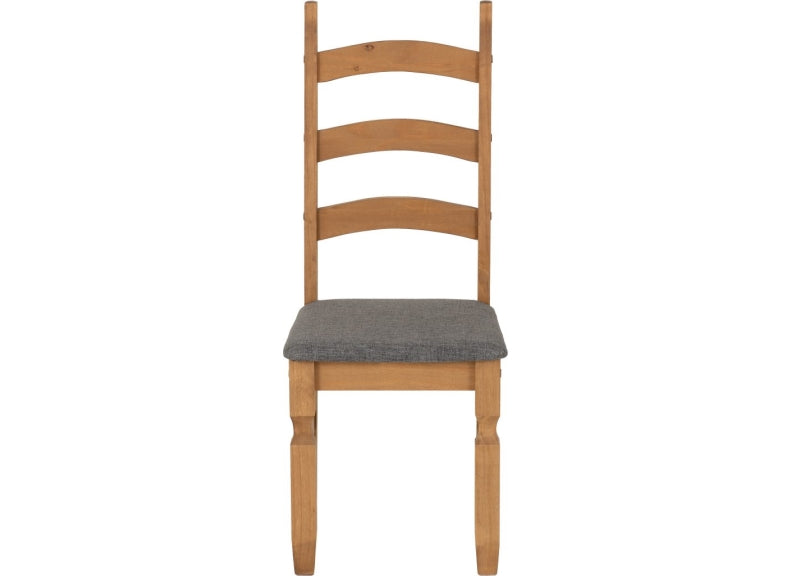 The Corona 6 ft Fixed Dining Table with Six Corona Ladder Back Solid Seat, Grey Fabric Seat OR Brown Faux Leather Seat Dining Chairs.