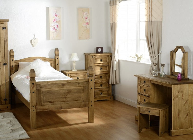 Corona Pine Four Drawer Dressing Table with four drawers, use with the Corona Pine Dressing Mirrors & Stool to make a bedroom vanity set.
