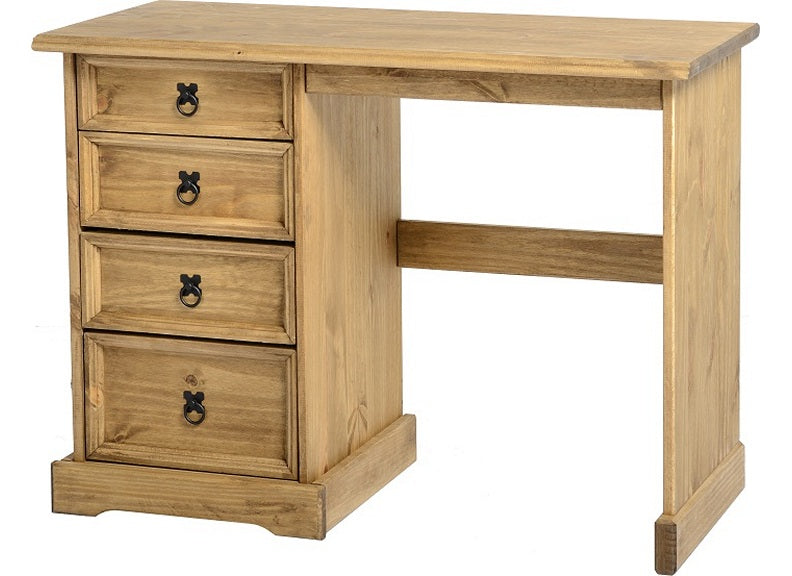 Corona Pine Single Pedestal Dressing Table-the Mexican styled Corona Pine Collections have prominent black metal studs, metal drawer runners & black metal hinges, which add to their design style, all elements of these collections have distressed pine finishes and are exceptional value for money.