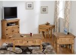 Corona Pine Table Nest-the Mexican styled Corona Pine Collections have prominent black metal studs, metal drawer runners & black metal hinges, which add to their design style, all elements of these collections have distressed waxed pine finishes and are exceptional value for money. Every conceivable dining, bedroom or occasional item is available.
