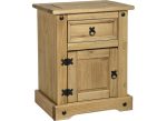 Corona Pine Bedside With Locker-the Mexican styled Corona Pine Collections have prominent black metal studs, metal drawer runners & black metal hinges, which add to their design style, all elements of these collections have distressed pine finishes and are exceptional value for money.