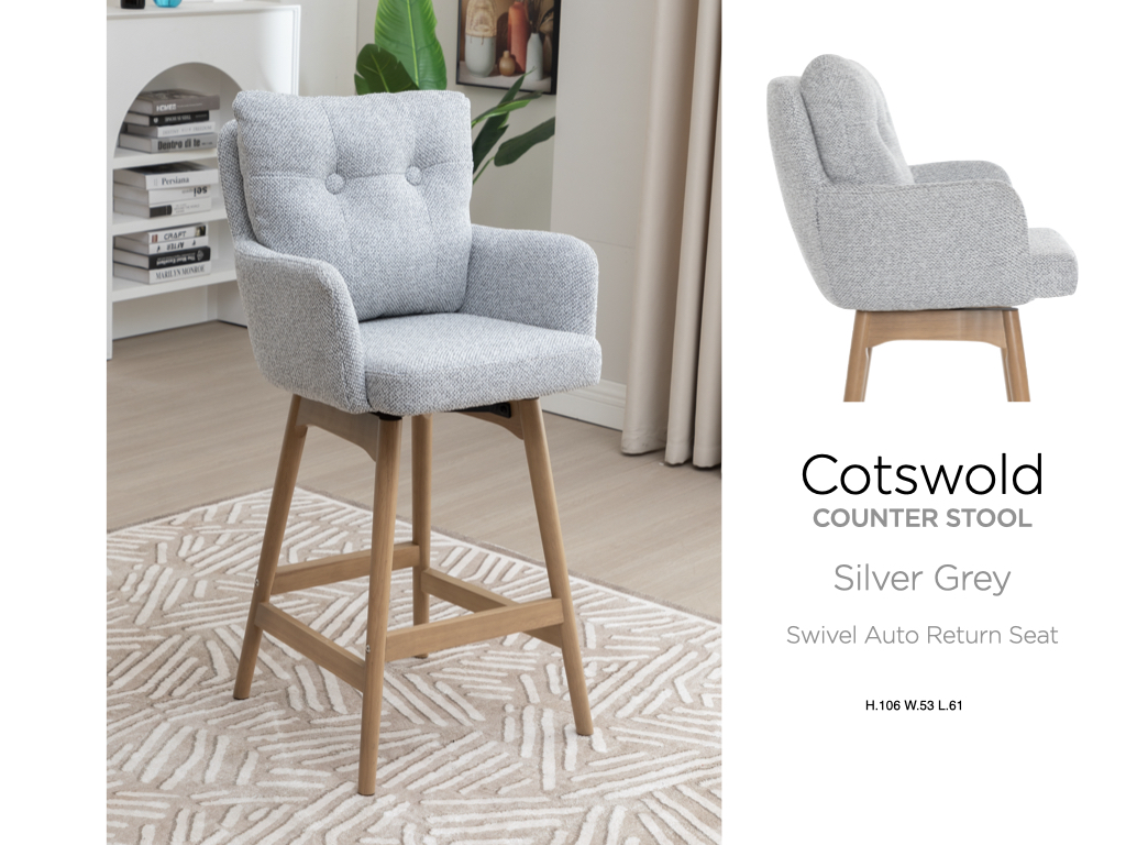 Cotswold Fabric Counter Stool Silver Grey