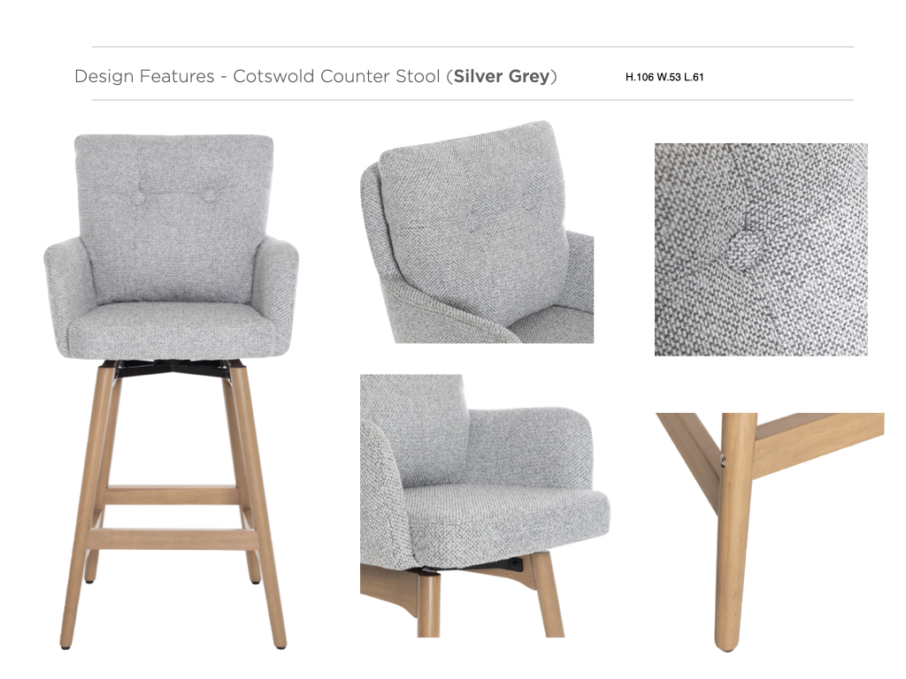 Home Living Room Chairs/Stools Cotswold Fabric Counter Stool Silver Grey