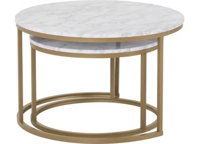 Ideal value for money table set to enhance your occasional room. Use as a set of nesting tables or as coffee tables. the items are composed of wood board with a marble effect top and metal frames.