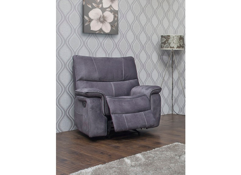 Emilio Reclining Armchair – with a plush dark grey fabric upholstery, manual reclining action giving a comfort experience par excellence, perfect for viewing your favourite movie.