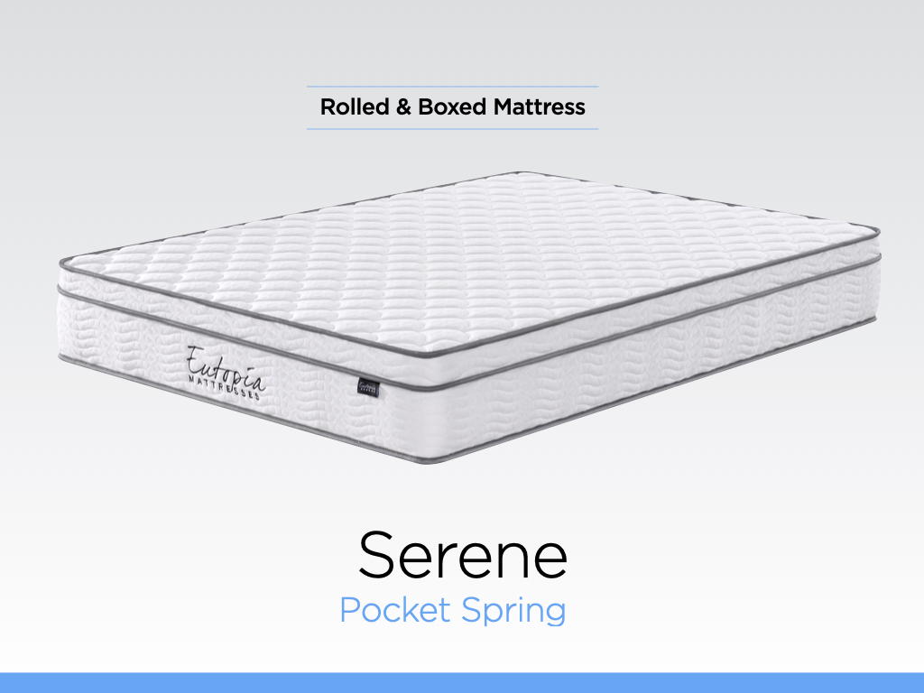 The Eutopia Serene Mattress is rolled and boxed for your convenience. This mattress is pocket sprung to provide ultimate comfort..