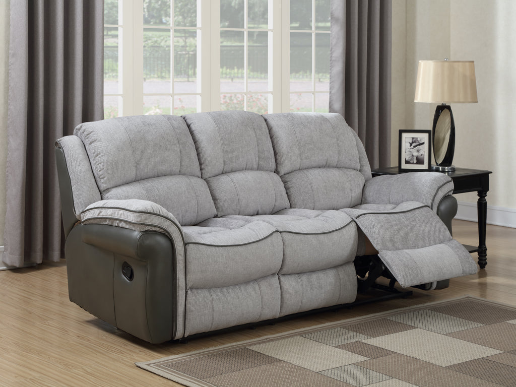 - Elegant Dual-Tone Design: The combination of grey fabric with grey Leather Aire accents creates a cohesive and modern look, enhancing any room’s decor with its elegant simplicity.