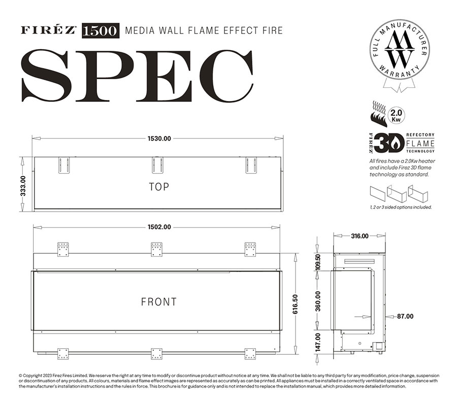 Customise your stove with a selection of fuel beds, including coals, crystals, or logs, and enjoy the added authenticity of an integrated log store. Embrace both style and practicality with this modern electric stove, designed to deliver comfort and elegance in equal measure.