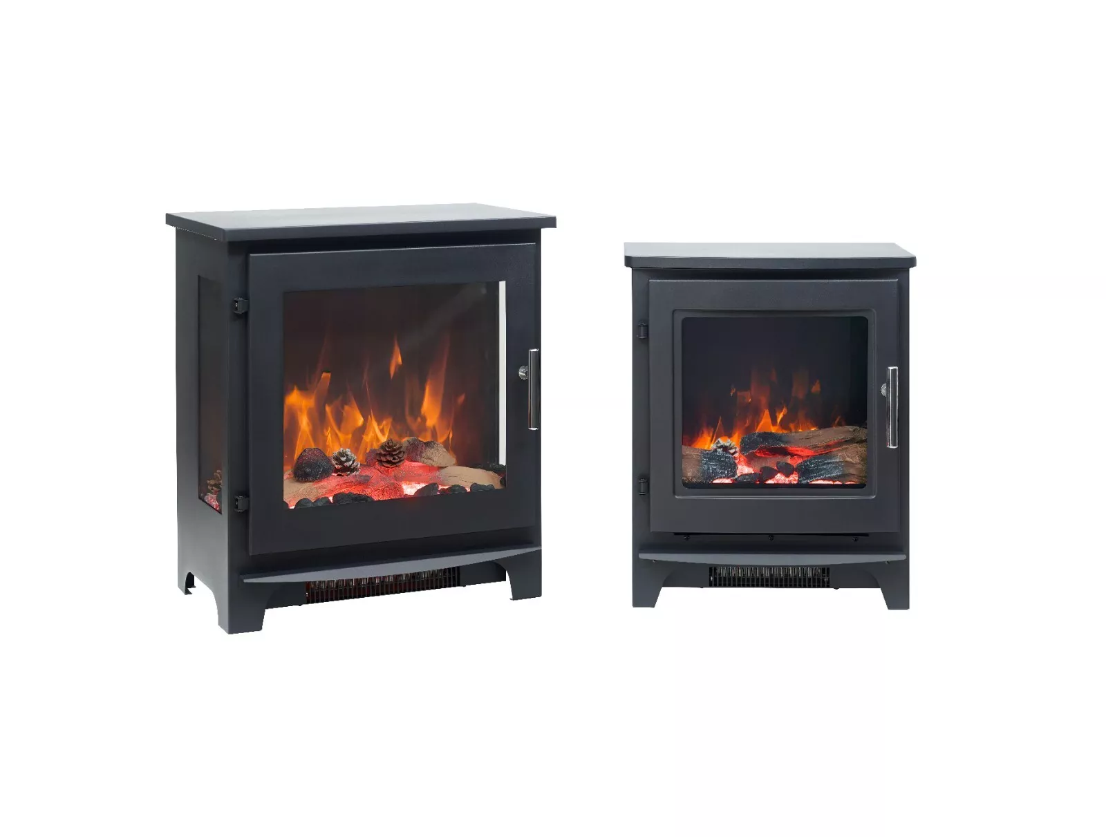 The Trio Electric Stove is a perfect blend of classic charm and modern functionality. With its stylish steel and three-sided glass design, it enhances the look of your living room and creates a warm and inviting atmosphere.