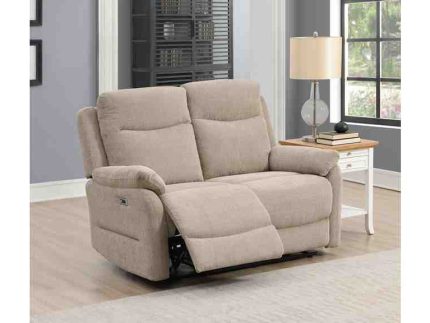 The Keegan Fabric Powered Two-Seat Sofa is the ideal choice for those seeking luxury and functionality in a compact design. With deep fabric padded upholstery, powered reclining action, and sleek chrome-finished control buttons, this sofa enhances your living space with both comfort and style. Available in grey or oatmeal colours, it suits a variety of home décors.Key Features: