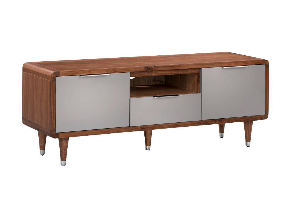 The Girona Large TV Unit in Walnut/Grey is a standout piece in the Girona Walnut Collection, expertly blending the allure of retro design with the functionality needed for today’s entertainment essentials. Constructed from solid walnut and selected walnut veneers, this TV unit exudes warmth and durability.Â