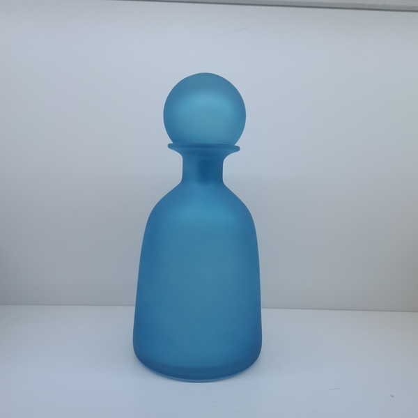 Glass Blue Frosted Apothecary Bottle With Stopper (set of 2)