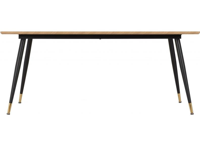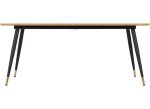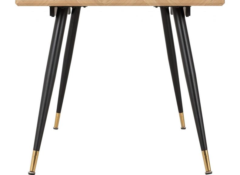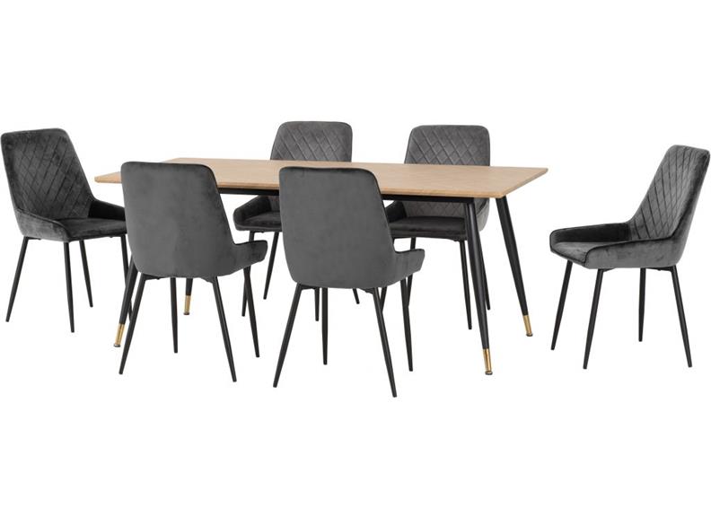 HAMILTON 1.8 m FIXED DINING SET – with a wood effect table top inlaid chevron style design and black metal legs finished with gold effect tips. Included here are six Avery Velvet Dining Chairs giving a rugged family dining set at a good value for money price.